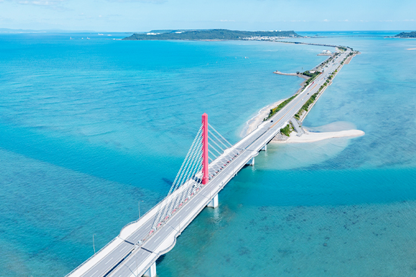 | うるま市 | 海中道路 勝連半島から近隣離島に伸びる全長約5kmの四方を海に囲まれた道路。 |
